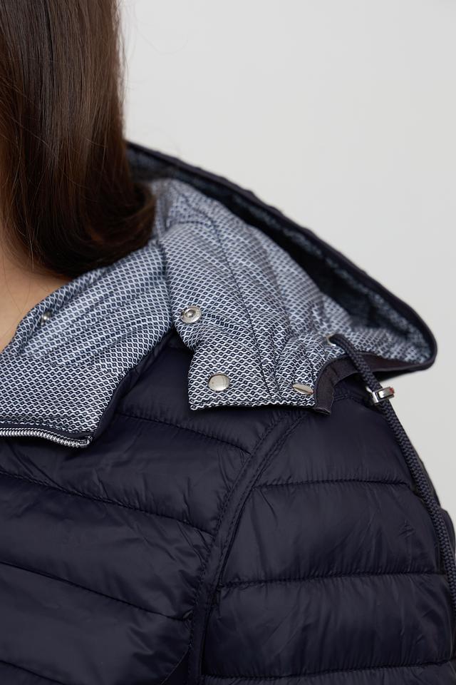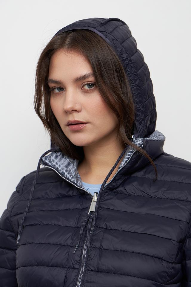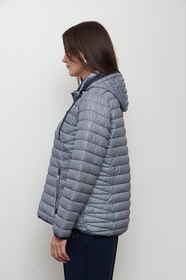 Модель имеет стеганую фактуру, капюшон и застежку-молнию. Боковые карманы на молнии обеспечивают удобство хранения мелочей. Куртка легкая и комфортная в носке, идеально подходит для повседневной носки в прохладную погоду.