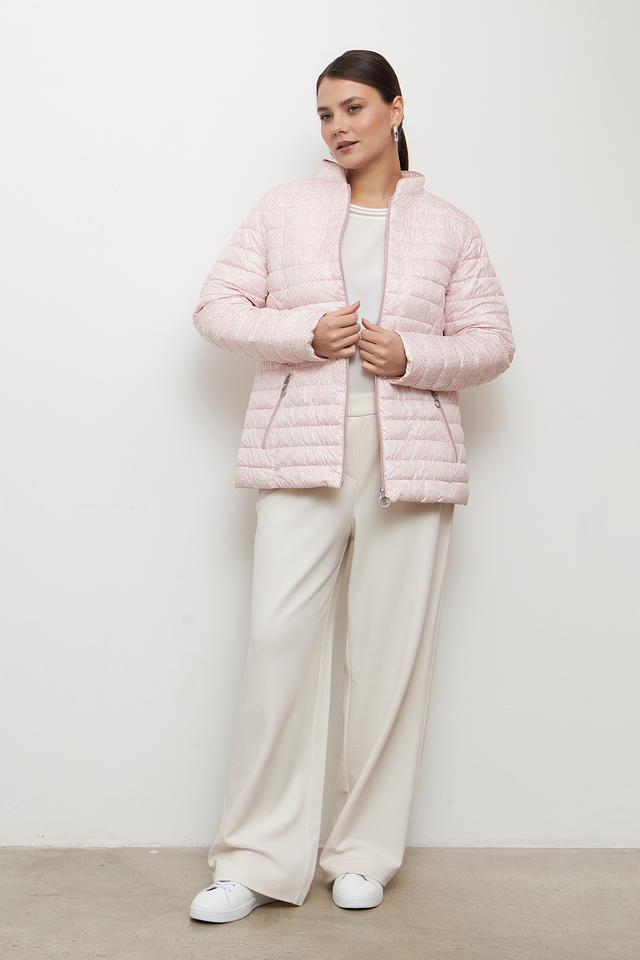 Эта куртка от Lebek выполнена в нежном розовом цвете и имеет стеганую текстуру. Модель застегивается на молнию, имеет воротник-стойку и боковые карманы на молнии.