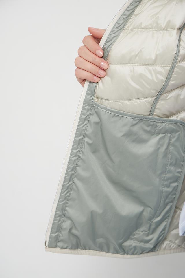 Куртка имеет прямой крой и длину до бедер, что делает ее универсальной для различных образов. Воротник-стойка защищает от ветра, а молния по всей длине обеспечивает удобство застегивания.