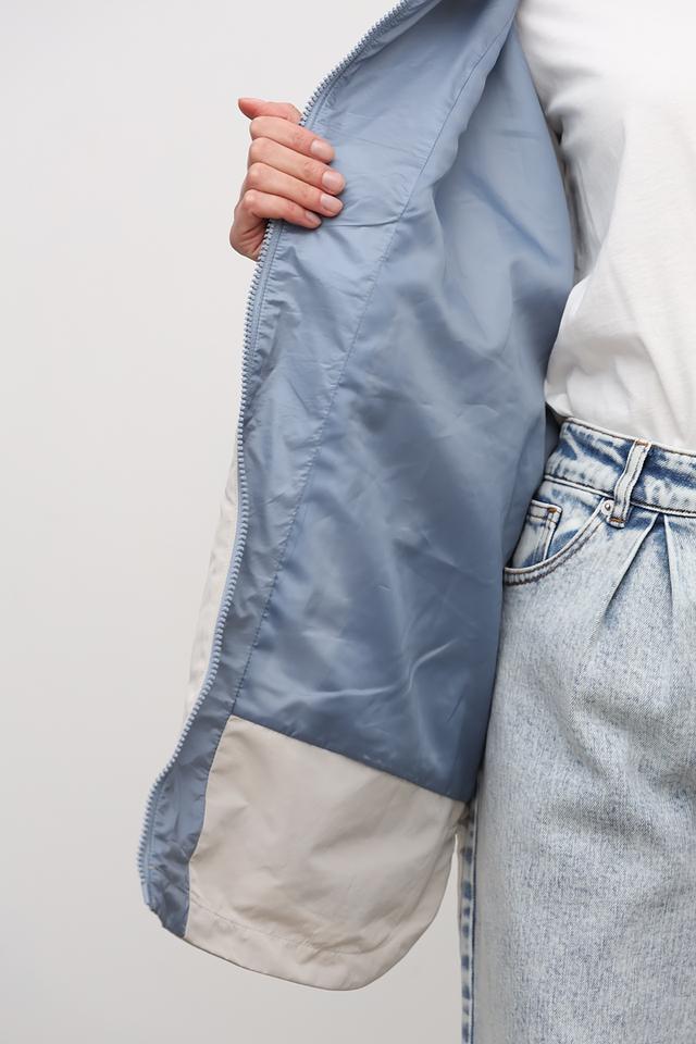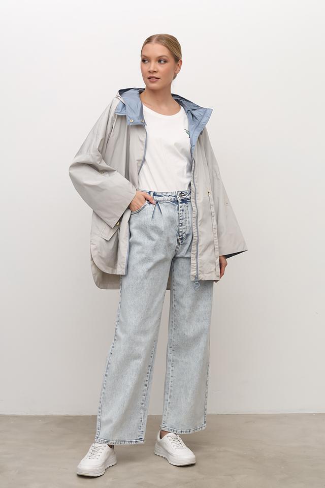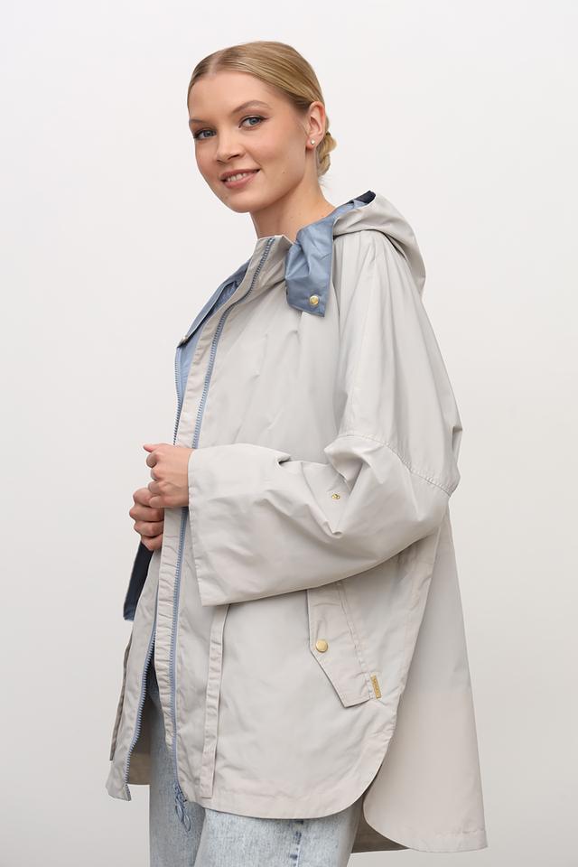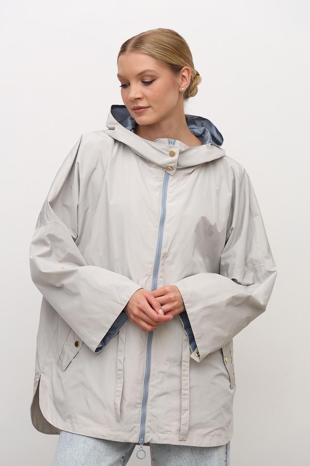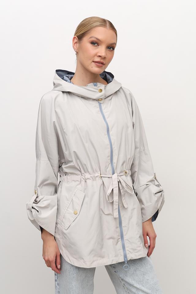 Бежевая куртка Baronia оверсайз кроя с капюшоном и голубой подкладкой. Модель выполнена из 100% полиэстера, имеет удобный капюшон и функциональные карманы. Состав: полиэстер 100%