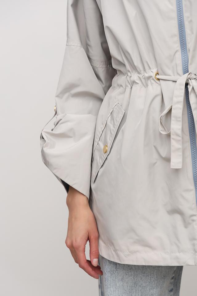 Модель оснащена капюшоном, который защитит от непогоды, а голубая подкладка добавляет оригинальности. Куртка застегивается на молнию, имеет функциональные карманы и шнурки на талии для регулировки силуэта.