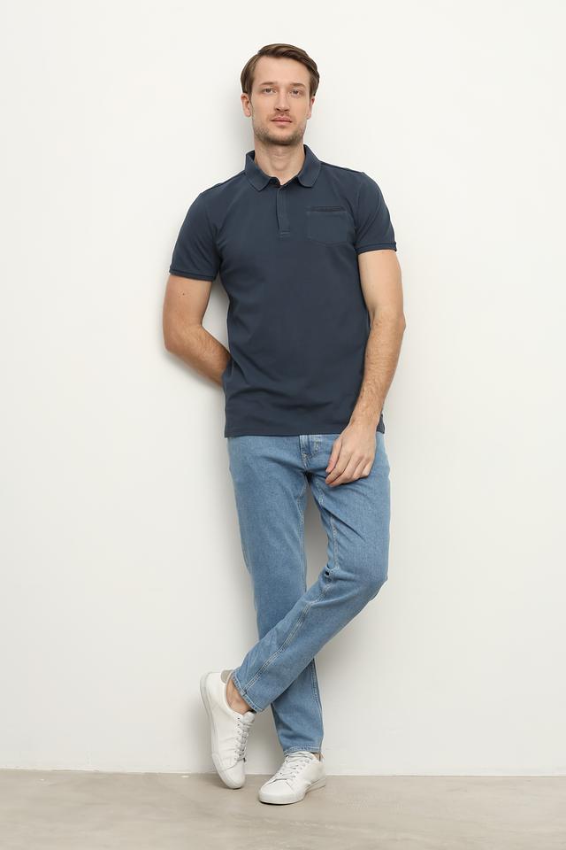 Тёмно-синий цвет делает эту модель универсальной и подходящей для различных образов – от повседневных до более формальных. Поло оснащено короткими рукавами и традиционным воротником-поло. На груди расположена накладная планка с карманом, добавляющая поло индивидуальности.