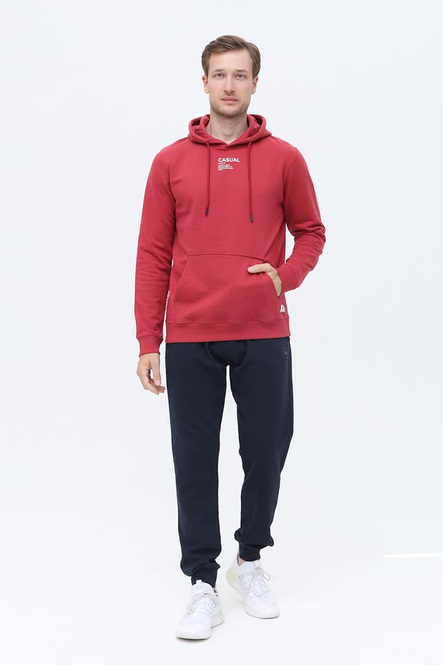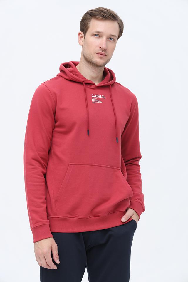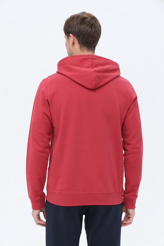 Толстовка имеет классический крой с капюшоном и карманом-кенгуру. На груди расположен небольшой логотип бренда. Малиновый цвет придает модели яркий и стильный вид.