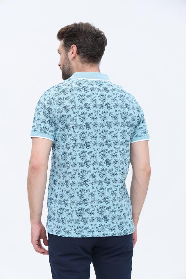 Это мужское поло от Basefield выполнено в светло-голубом цвете и украшено оригинальным цветочным принтом. Модель имеет классический крой с короткими рукавами и воротником-поло.