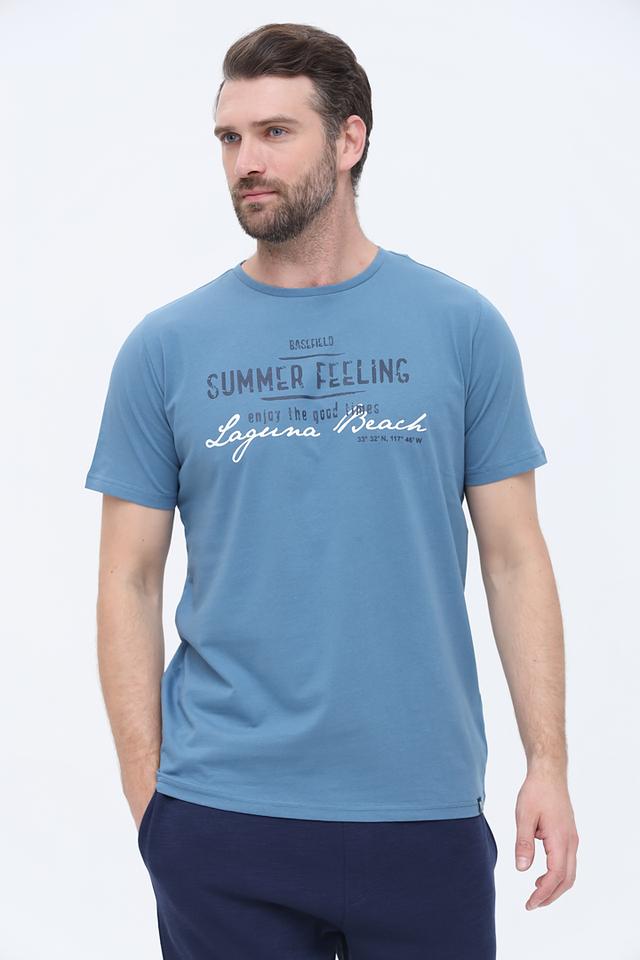 Голубая футболка Basefield с оригинальным принтом – отличный выбор для создания повседневного образа. Изготовлена из 100% хлопка, обеспечивающего комфорт и воздухопроницаемость. Состав: хлопок 100%