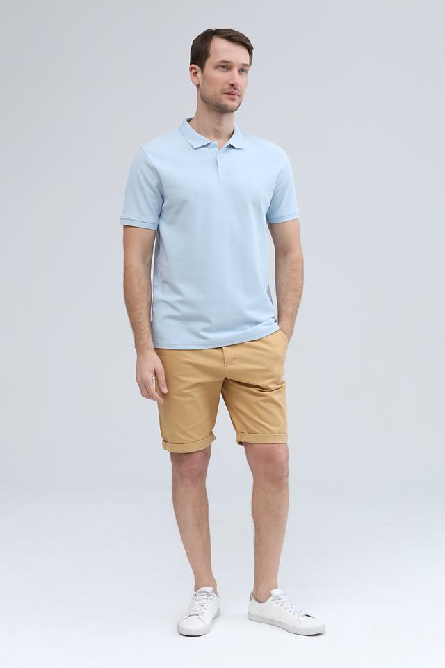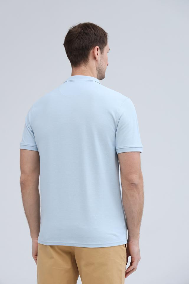 Классический крой поло обеспечивает свободу движений и хорошо сочетается с различными стилями одежды. Воротник и планка застежки выполнены в тон основной ткани. Поло имеет короткие рукава и стандартную длину.