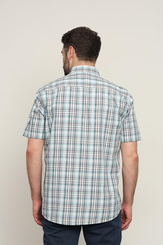 Рубашка имеет короткий рукав, что делает ее идеальной для теплой погоды. Воротник рубашки выполнен в классическом стиле. Застежка на пуговицах обеспечивает надежную фиксацию.