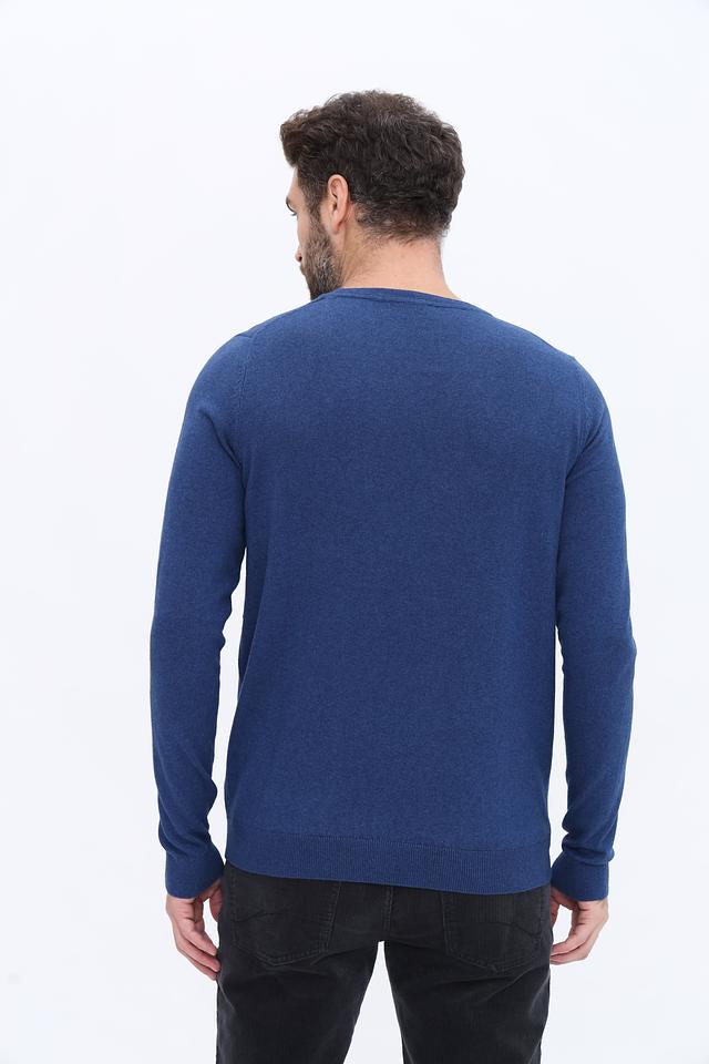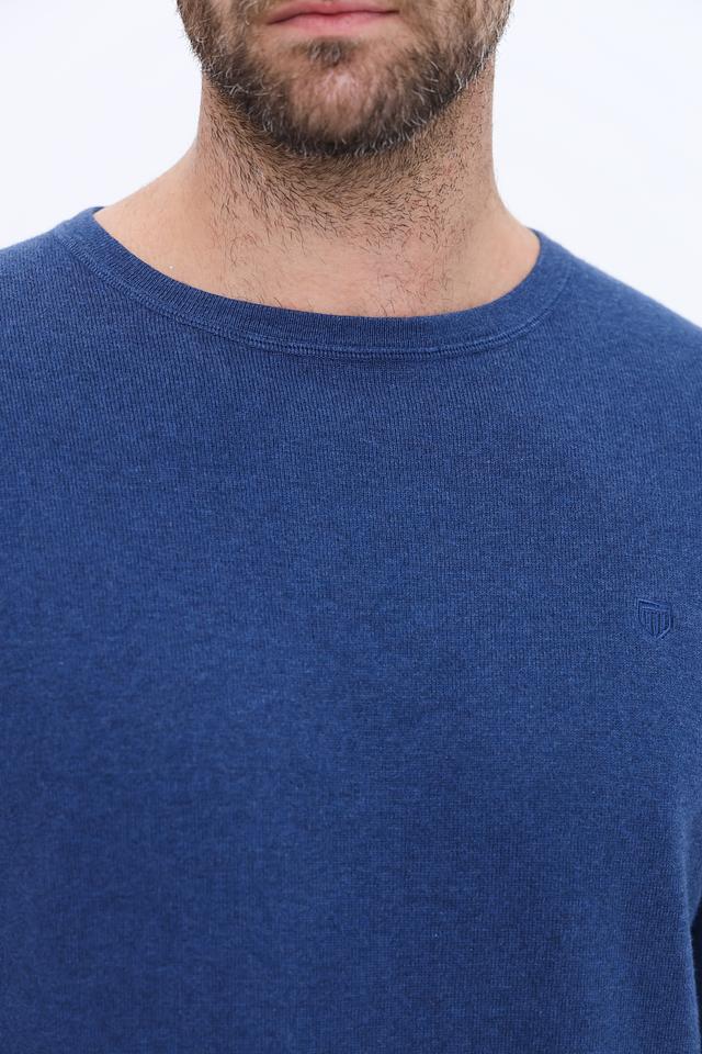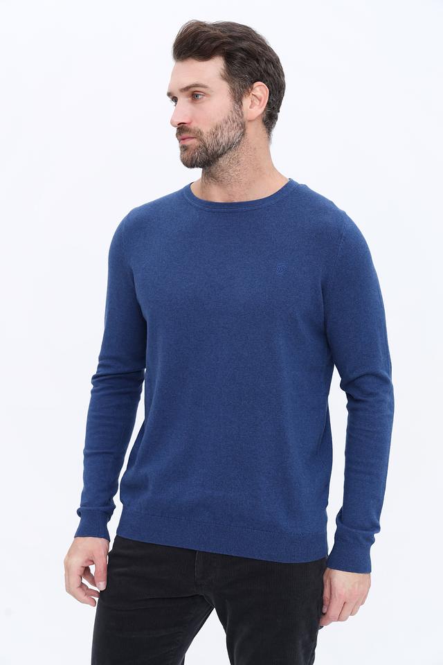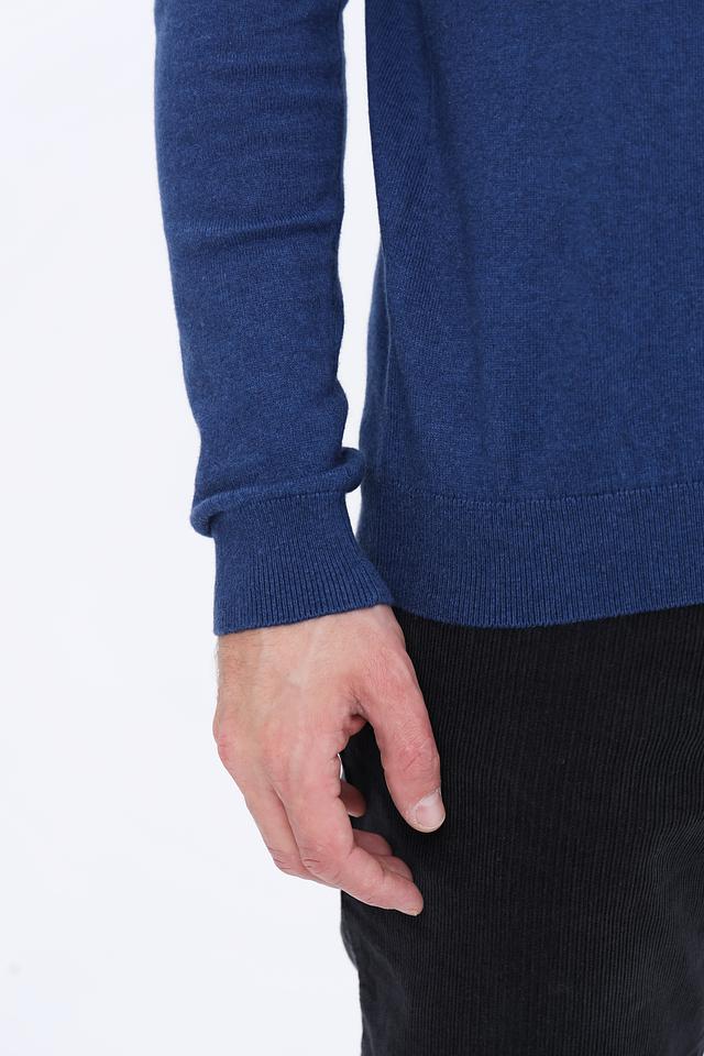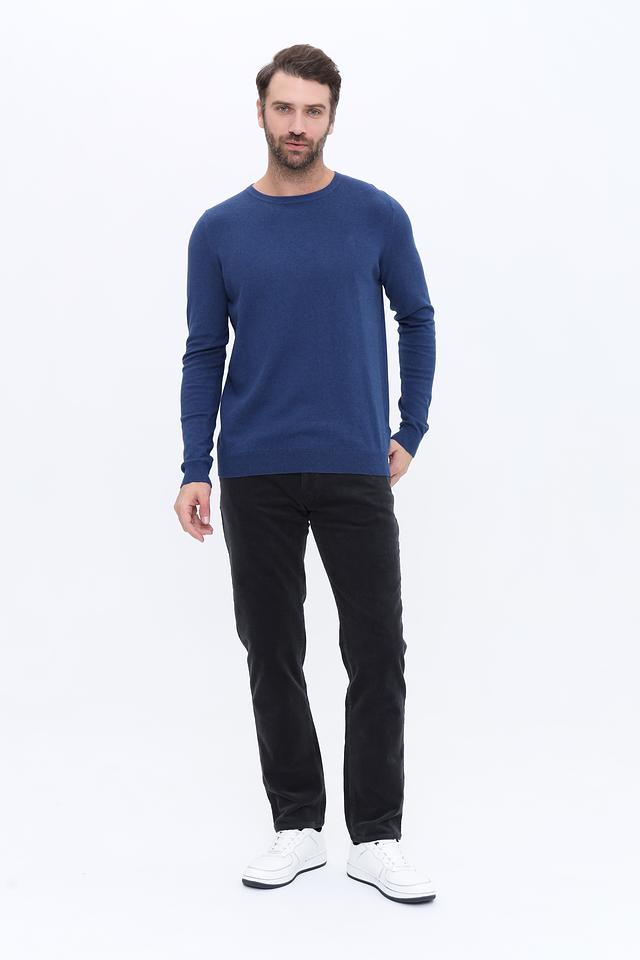 Мужской джемпер от Basefield выполнен из высококачественного хлопка с добавлением кашемира, что обеспечивает мягкость и приятные тактильные ощущения. Основной цвет изделия – насыщенный синий. Круглый вырез горловины и длинные рукава создают классический силуэт.