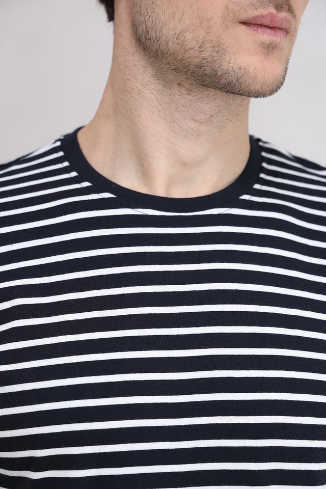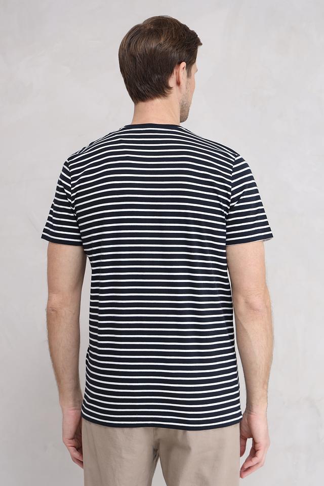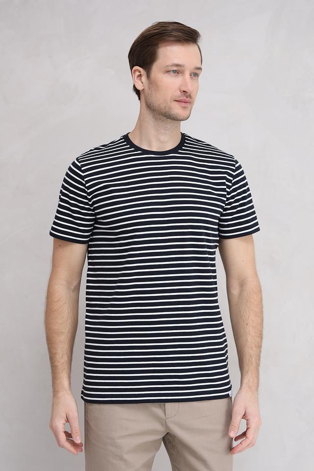 Эта мужская футболка от Basefield – идеальный выбор для тех, кто ценит комфорт и стиль. Футболка выполнена в классическом дизайне с горизонтальными полосами синего и белого цветов.