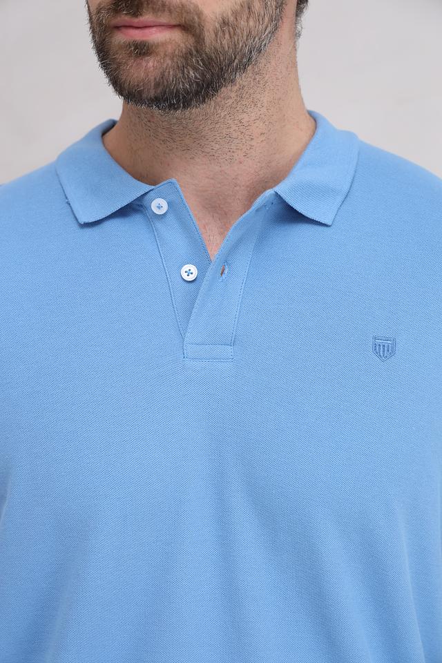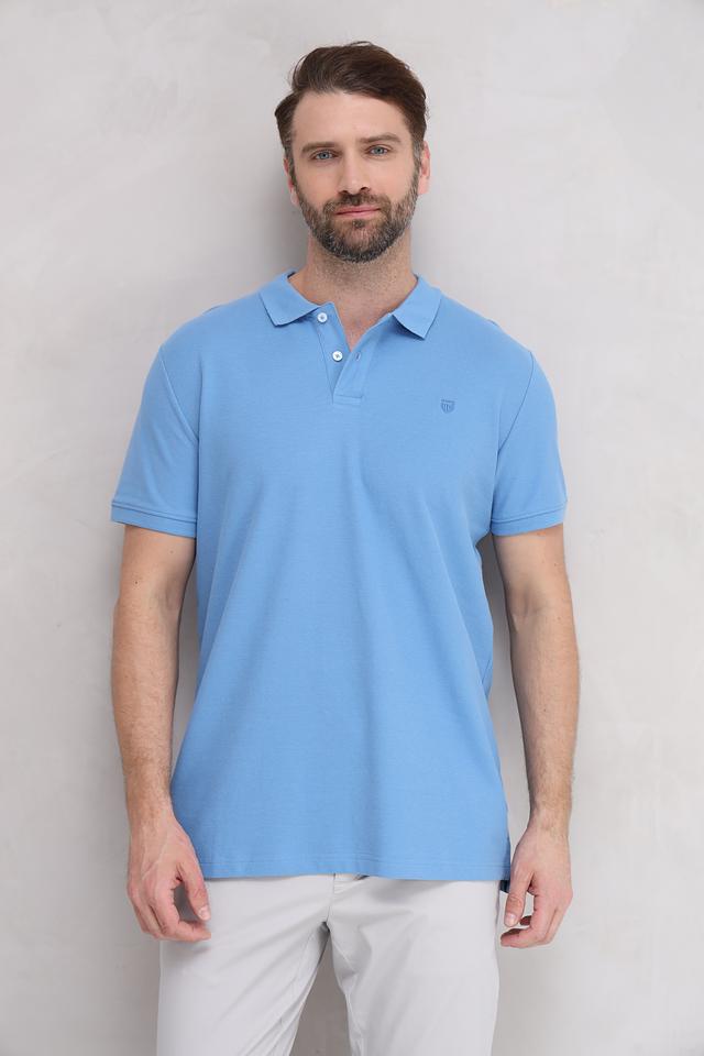 Поло голубого цвета имеет короткие рукава и воротник-поло с тремя пуговицами. На левой стороне груди расположен небольшой логотип бренда. Эта рубашка поло идеально подходит для повседневной носки, а также для создания более формальных образов.
