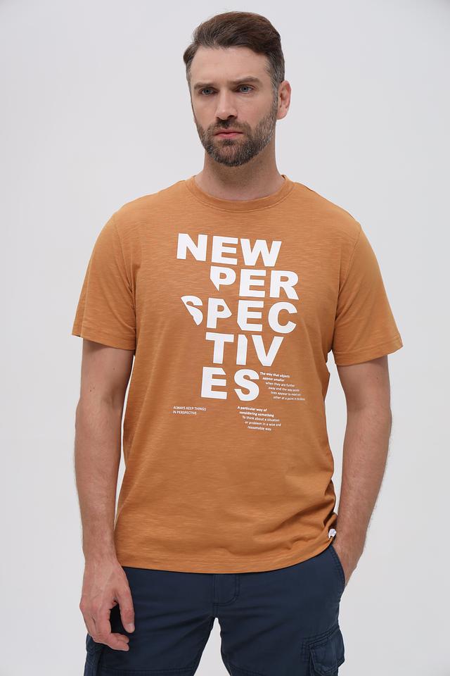 Мужская футболка Basefield горчичного цвета с ярким графичным принтом. Изготовлена из 100% хлопка, обеспечивающего комфорт и воздухопроницаемость. Отличный выбор для создания повседневного образа. Состав: хлопок 100%