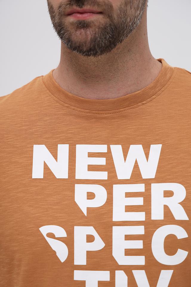 Эта футболка имеет прямой крой и короткий рукав, что делает ее идеальной для теплой погоды. Главной особенностью модели является яркий и запоминающийся принт на лицевой стороне, выполненный в белом цвете. Принт состоит из надписи "NEW PERSPECTIVES" и дополнительного текста, создающего современный и динамичный образ.