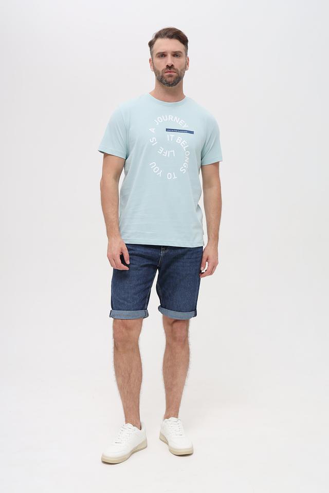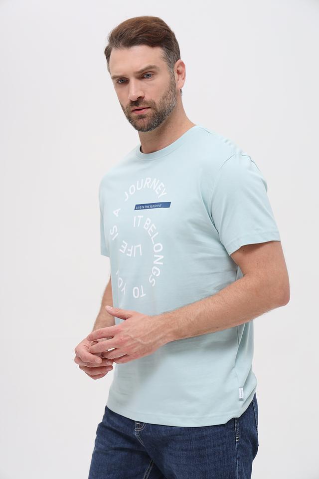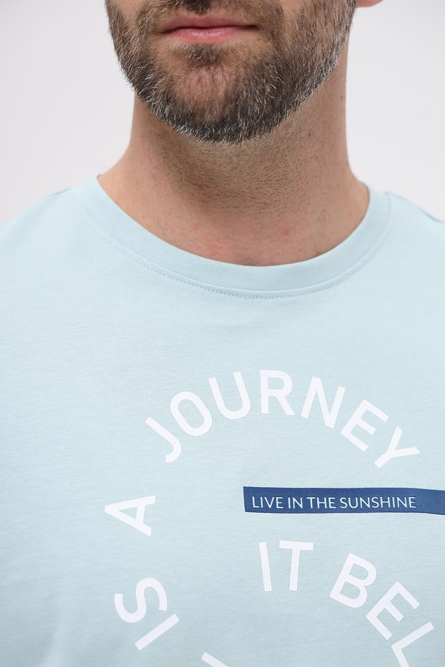 Мятная футболка Basefield с оригинальным круглым принтом и надписью "Journey". Изготовлена из 100% хлопка, обеспечивая комфорт и воздухопроницаемость. Идеальный выбор для повседневного образа. Состав: хлопок 100%