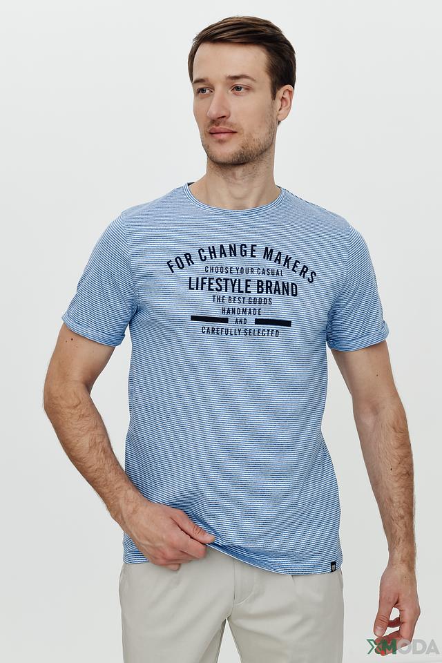 Голубая футболка Basefield с коротким рукавом и оригинальным принтом. Изготовлена из хлопка с добавлением полиэстера для комфорта и долговечности. Отличный выбор для повседневного образа. Состав: хлопок 65%, полиэстер 35%