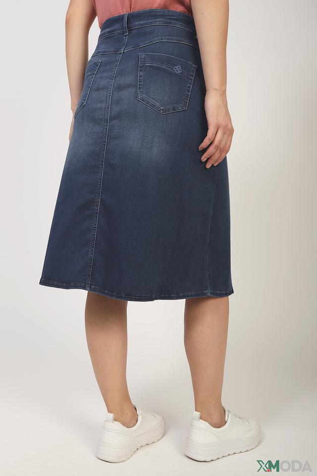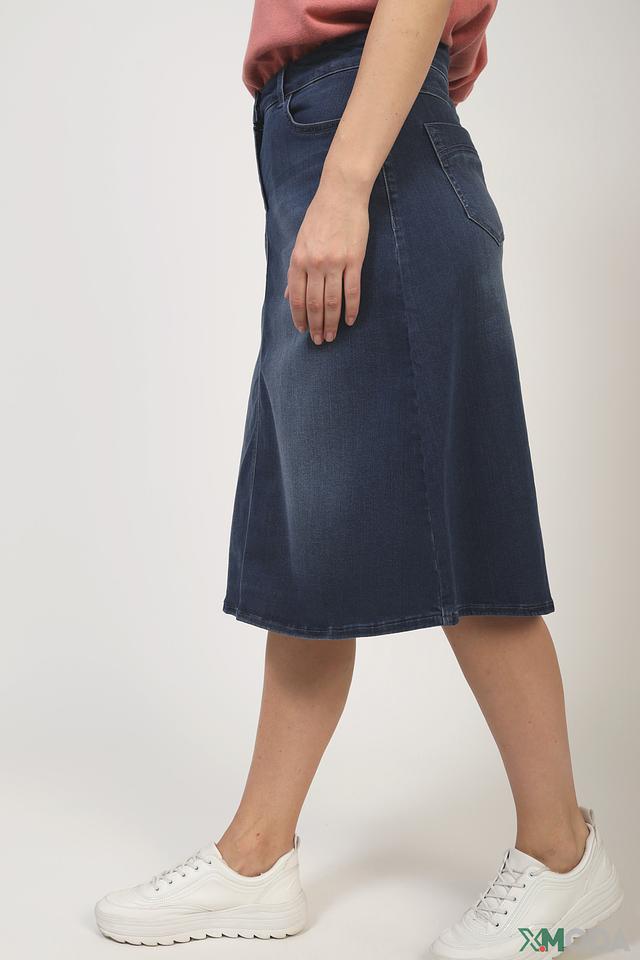 Юбка имеет прямую, слегка расклешенную форму, которая подчеркивает фигуру и обеспечивает свободу движений. Изготовлена из высококачественного хлопка с добавлением модала, полиэстера и эластана, что делает ее приятной к телу и устойчивой к износу.