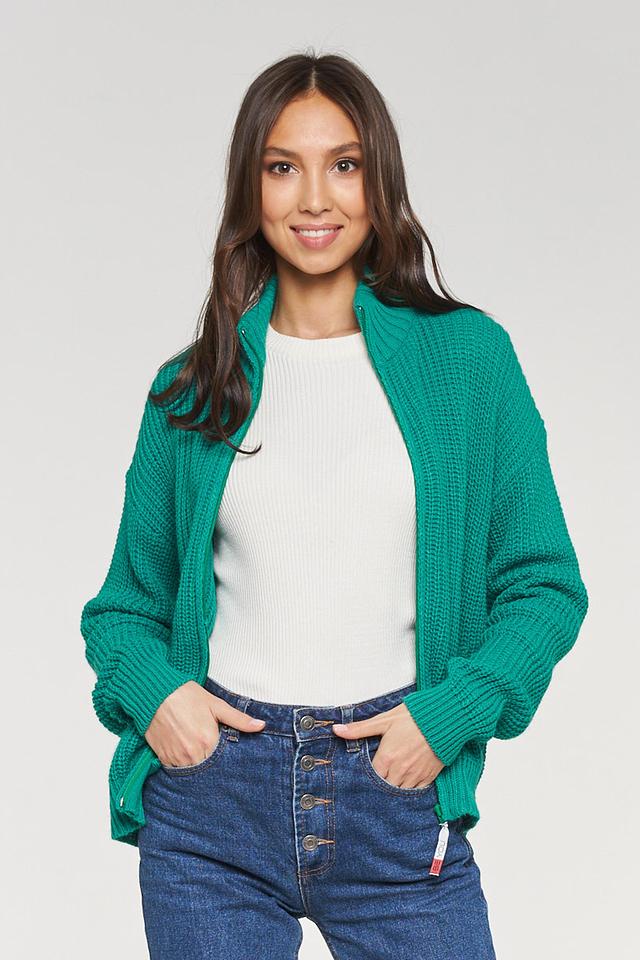 Зелёный вязаный жакет от BE YOU – удобная и стильная модель на молнии. Жакет имеет объёмную текстуру крупной вязки и высокий воротник, что делает его отличным выбором для прохладной погоды. Состав: пан 70%, шерсть 30%