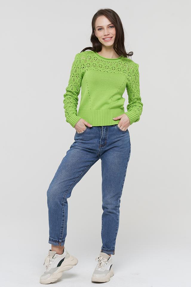 Женский джемпер BE YOU лаймового цвета с ажурным узором станет стильным дополнением к вашему гардеробу. Модель выполнена из мягкого и приятного к телу сочетания хлопка и пан, обеспечивая комфорт в носке. Состав: хлопок 50%, пан 50%