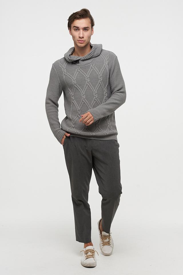 Передняя часть джемпера украшена рельефным узором в виде косы, придающим изделию текстуру и визуальный интерес. Капюшон добавляет практичности и позволяет создать более расслабленный образ.