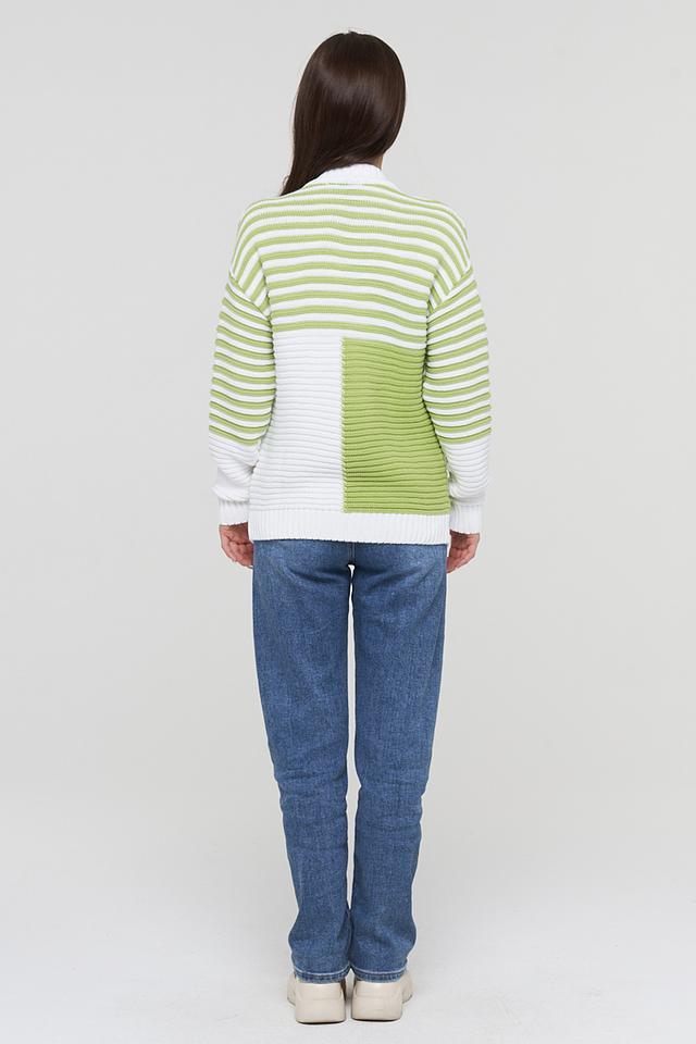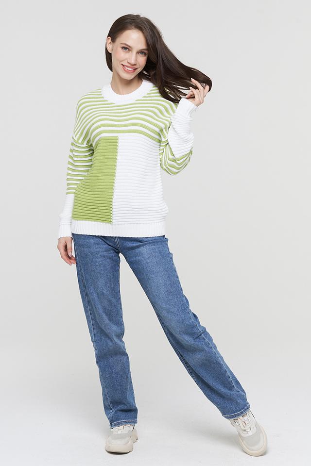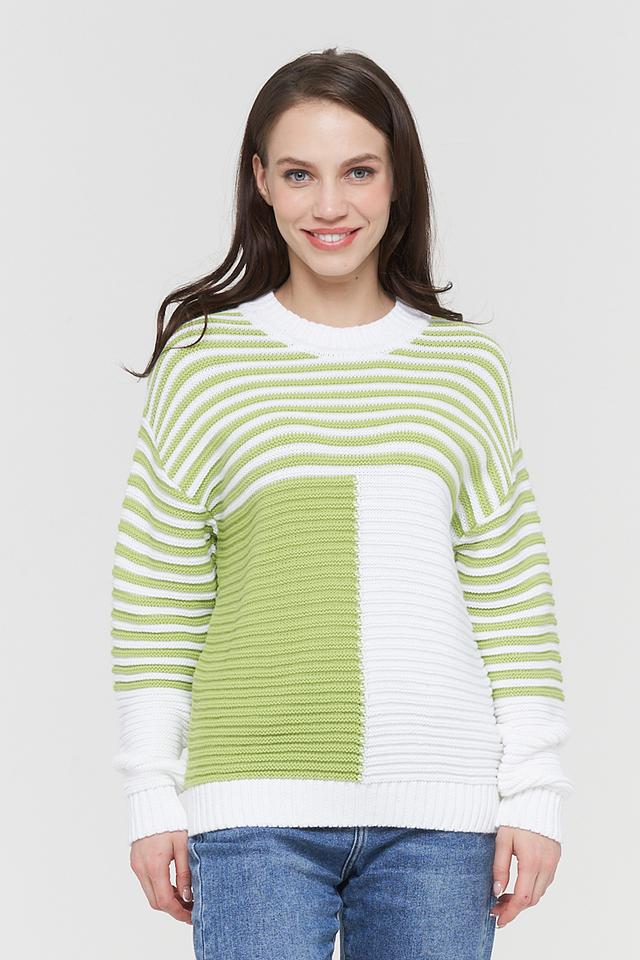 Женский джемпер BE YOU зелёного и белого цвета с полосатым узором и геометрическим дизайном. Изготовлен из мягкого сочетания хлопка и шерсти, обеспечивающего комфорт и тепло. Состав: пан 70%, шерсть 30%