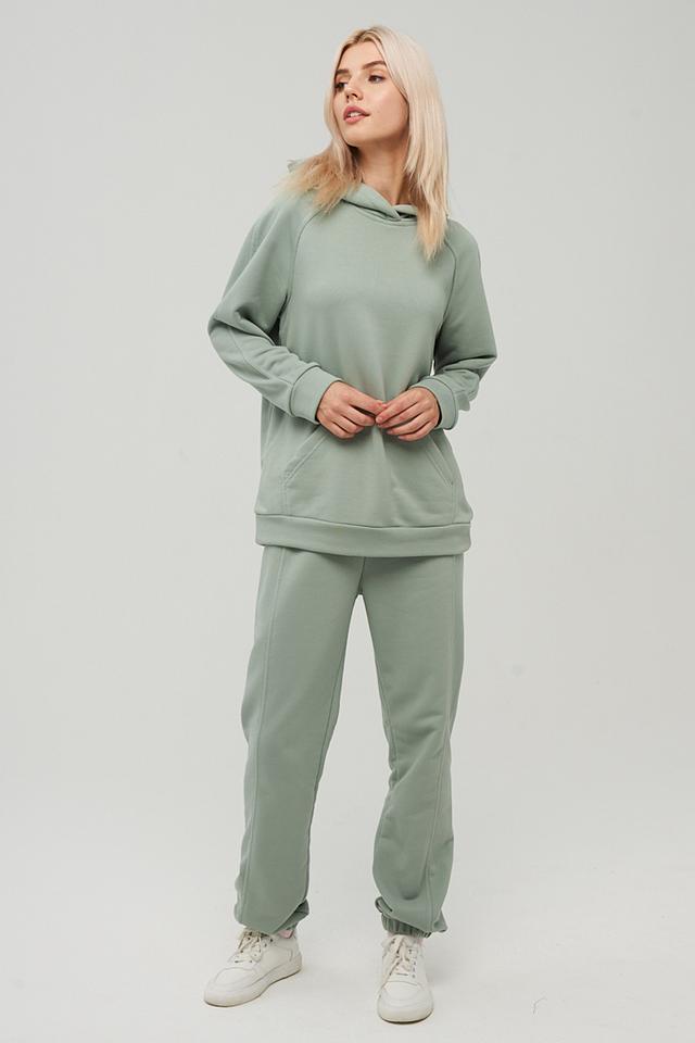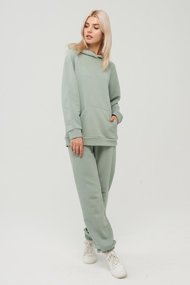 Спортивный костюм от BE YOU выполнен в спокойном мятном цвете, который легко сочетается с другими элементами гардероба. Комплект состоит из худи и спортивных брюк.