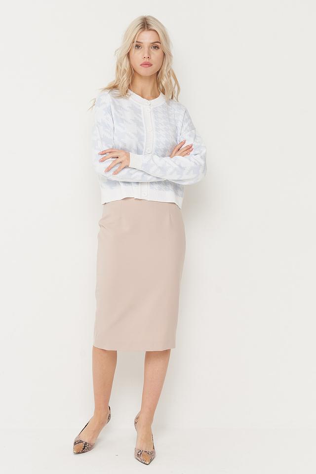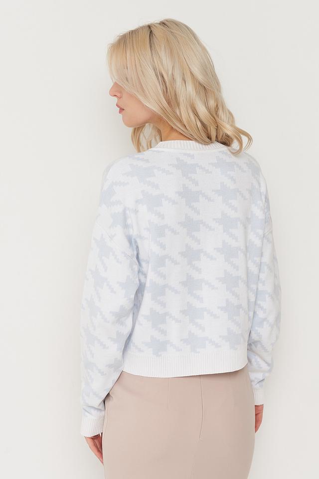Представляем вашему вниманию кардиган от бренда BE YOU, выполненный в приятной голубой гамме с классическим узором «гусиная лапка». Эта модель станет стильным акцентом вашего образа, добавив ему элегантности и утонченности.