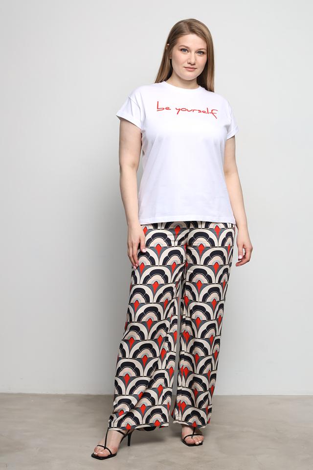 Женские брюки Be Yourself с оригинальным принтом в чёрно-красно-белой гамме станут ярким акцентом вашего образа. Модель выполнена из мягкой и приятной к телу вискозы, обеспечивающей комфорт в течение дня. Состав: вискоза 100%