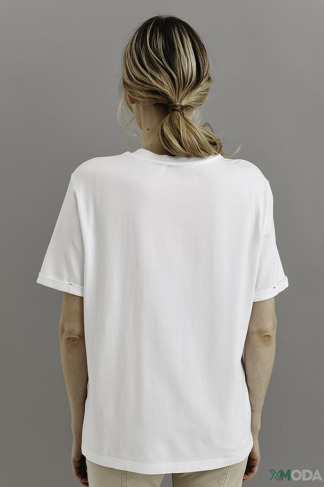 Футболка имеет свободный крой оверсайз, который обеспечивает максимальный комфорт и позволяет создавать модные и расслабленные образы. Короткий рукав и классический круглый вырез делают ее универсальной для любого случая.