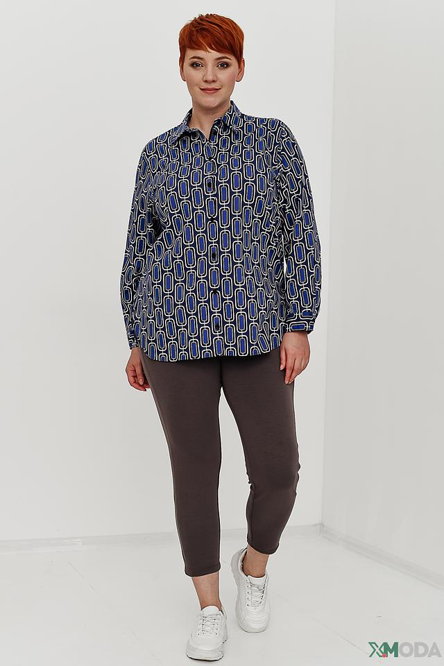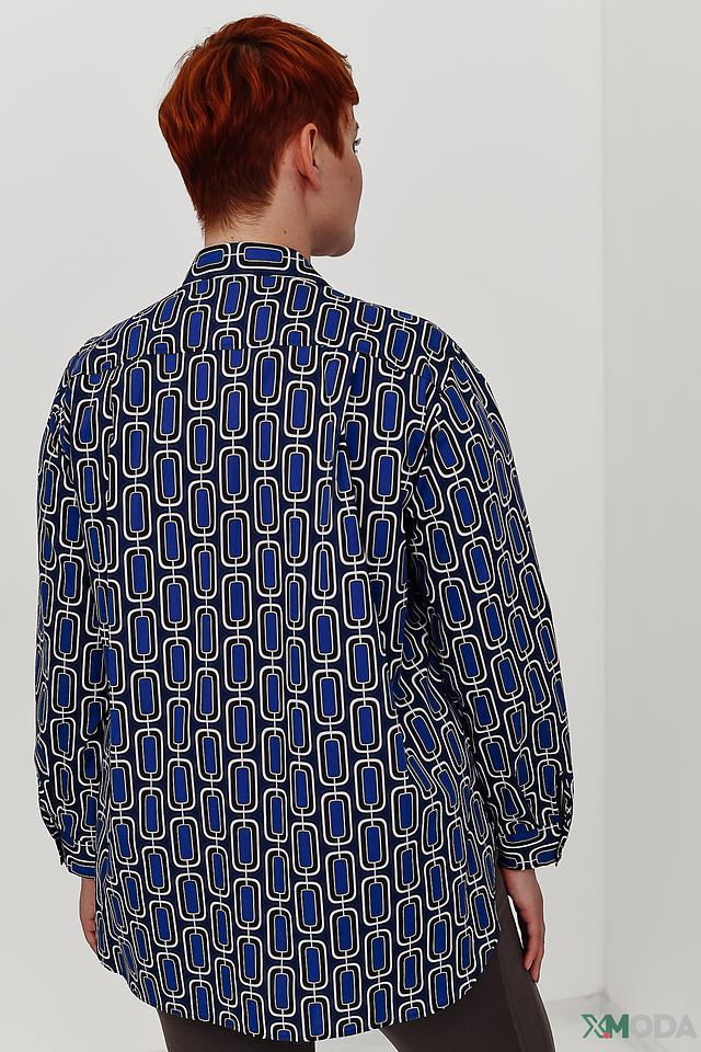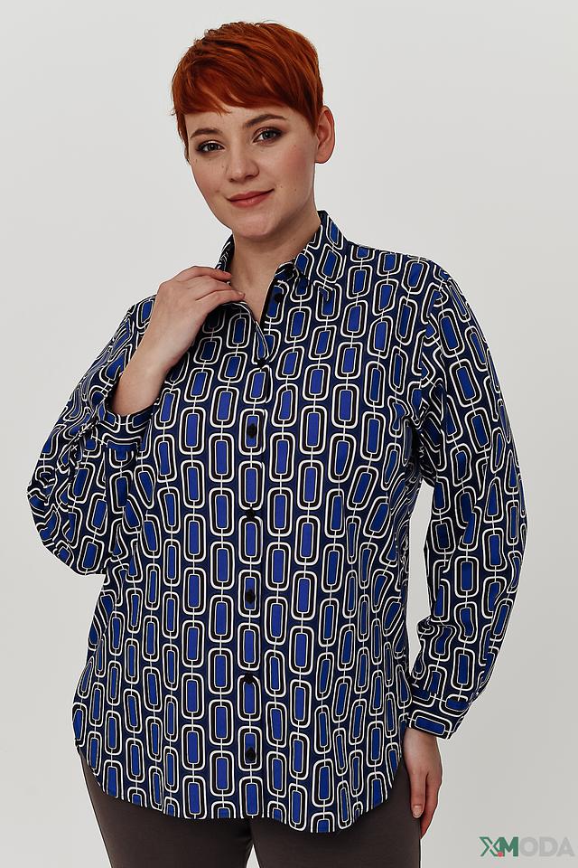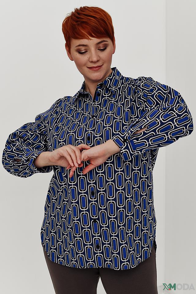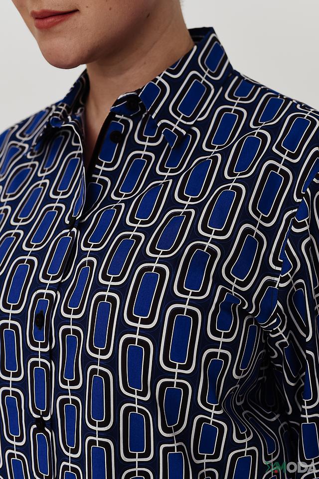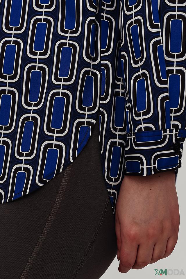 Рубашка имеет классический крой, длинные рукава и отложной воротник. Особенностью модели является яркий синий принт с геометрическим узором, который добавит изюминку вашему образу.