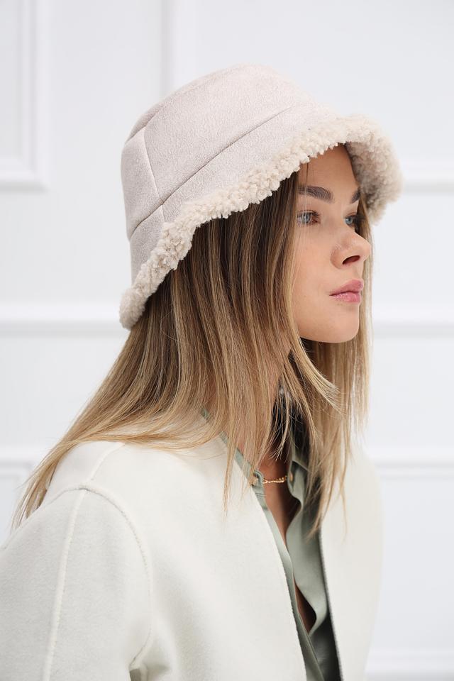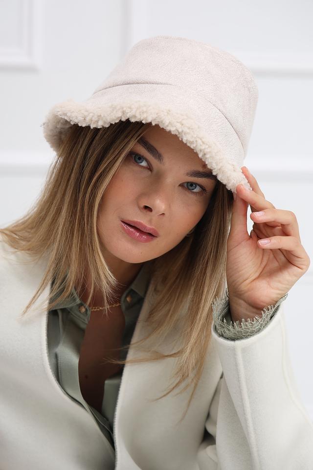 Шапка имеет приятную бежевую расцветку и отделана мягким искусственным мехом, который не только согревает, но и придает образу стильный вид. Удобная конструкция шапки обеспечивает плотное прилегание к голове, защищая от ветра и холода.