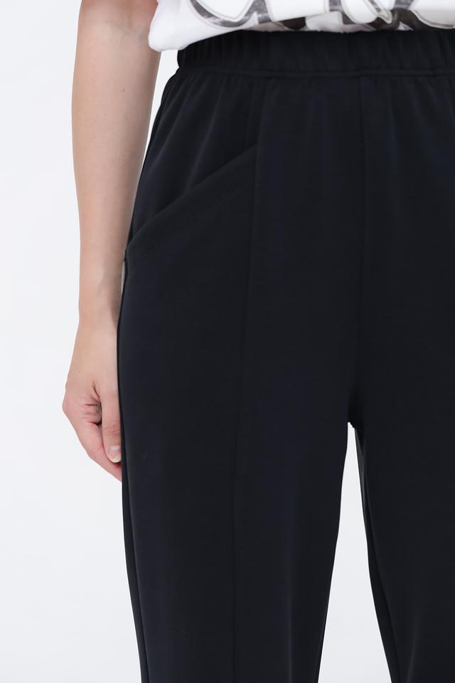Дизайн брюк включает в себя эластичный пояс на талии, боковые карманы и слегка зауженный к низу крой. Вертикальные вытачки спереди визуально удлиняют ноги и придают силуэту стройность. Эти брюки идеально подойдут для повседневной носки, занятий спортом или создания уютного домашнего образа.