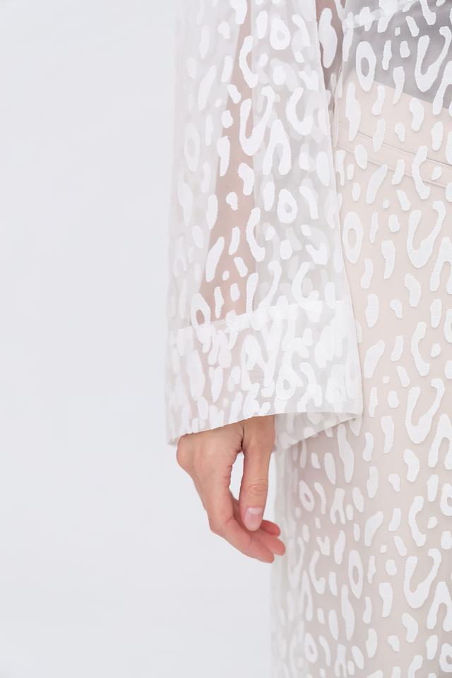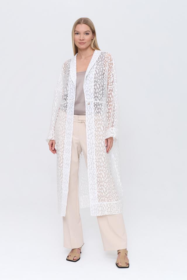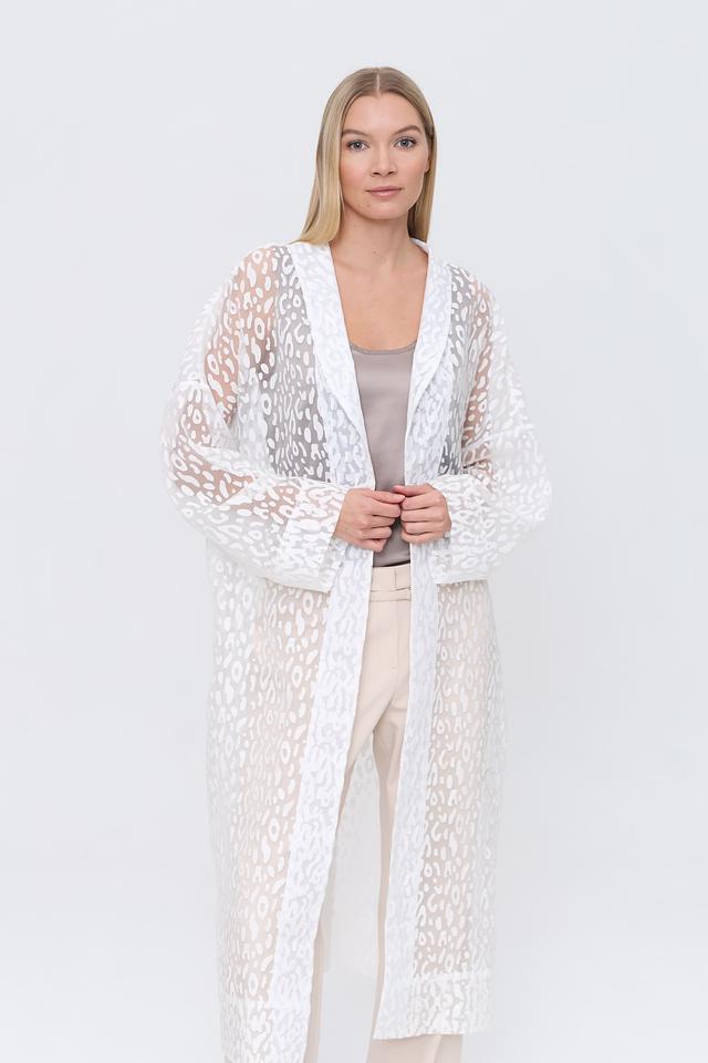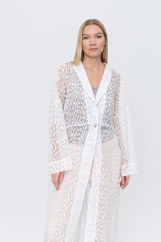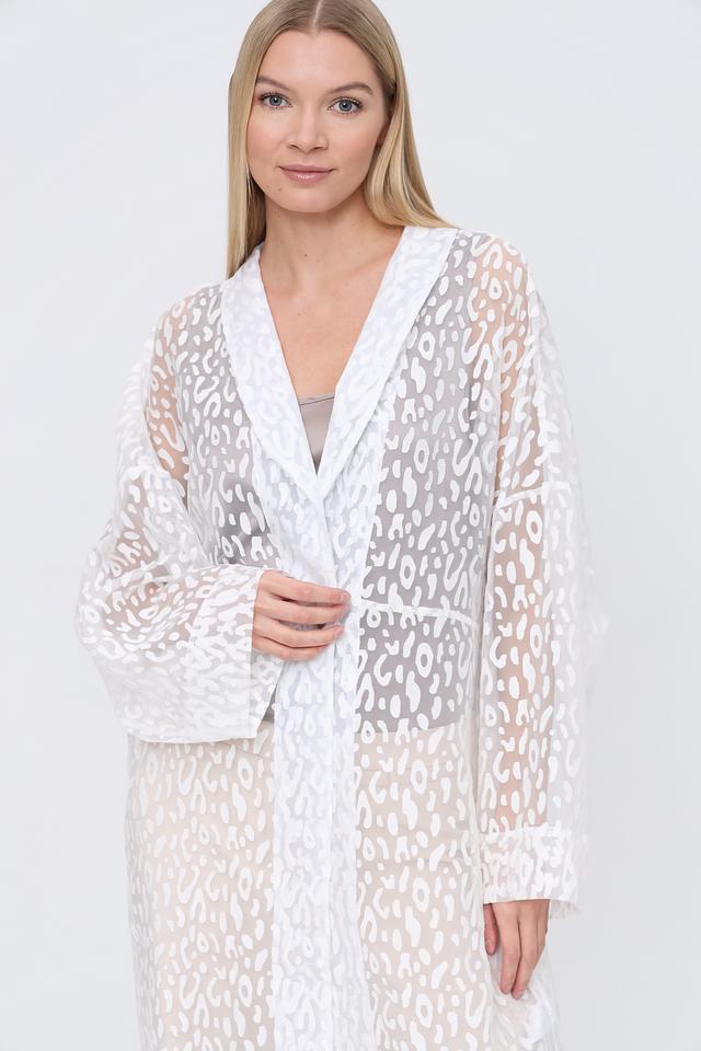Жакет Beatris белого цвета с оригинальным леопардовым принтом станет стильным дополнением к вашему гардеробу. Модель выполнена из лёгкой ткани и имеет удлинённый силуэт, что делает её универсальной для создания различных образов. Состав: полиэстер 100%