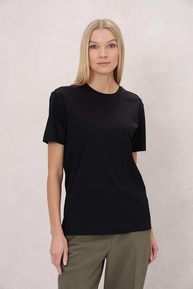 Эта чёрная футболка от Beatris станет незаменимой базой для создания множества образов. Изготовленная из высококачественного трикотажа, состоящего из хлопка, тенсела и шёлка, она обеспечивает комфорт и приятные ощущения при носке.
