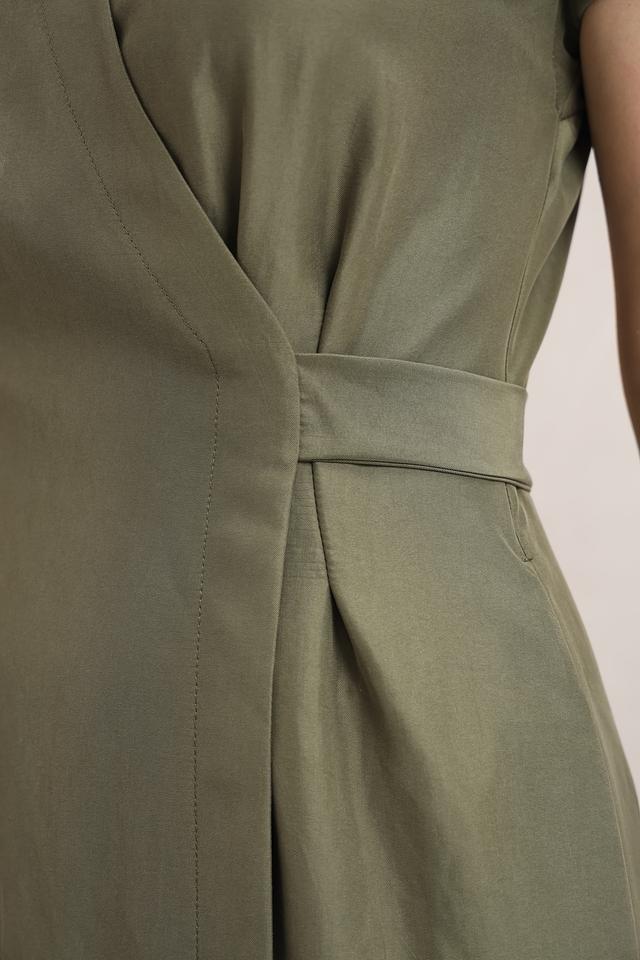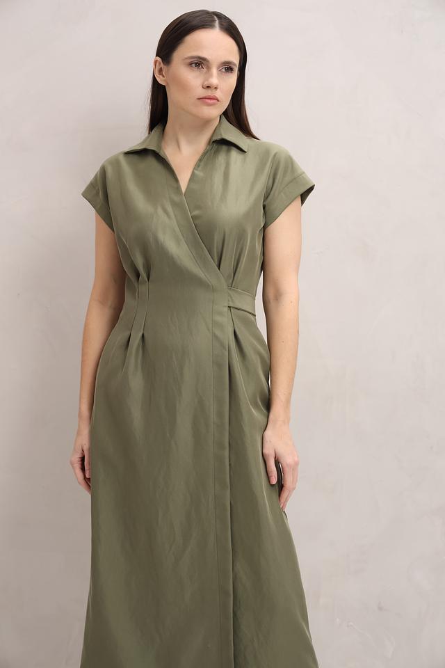 Платье оливкового цвета станет отличным дополнением к вашему гардеробу. Оно идеально подойдет для создания как повседневных, так и более формальных образов. Сочетайте его с туфлями на каблуке или сандалиями для завершения стильного лука.