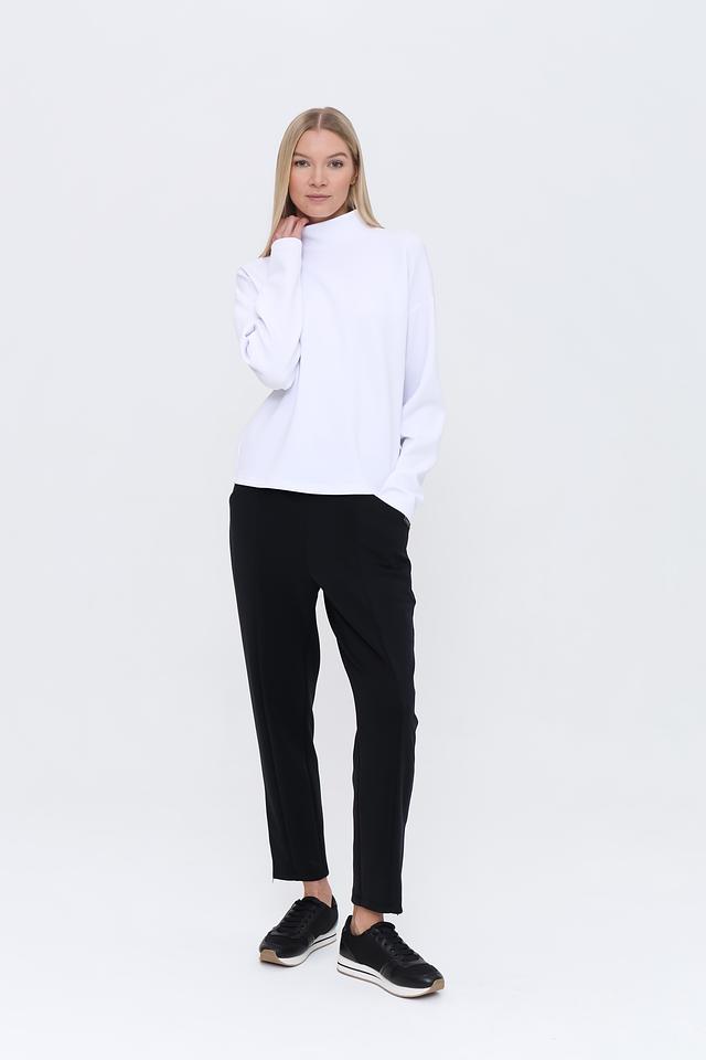Брюки имеют прямой крой, который обеспечивает свободу движений и подходит для различных типов фигур. Эластичный пояс гарантирует удобную посадку по талии. Ткань, состоящая из модала, полиэстера и эластана, приятна на ощупь, хорошо держит форму и практически не мнется.