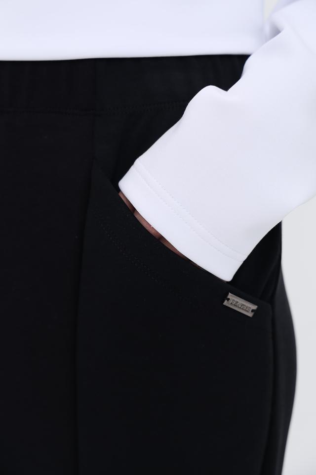 Декоративные элементы в виде молний на щиколотках придают брюкам современный и динамичный вид. Небольшой металлический логотип бренда на кармане добавляет изысканности. Эти брюки идеально подойдут для создания как повседневных, так и более формальных образов.