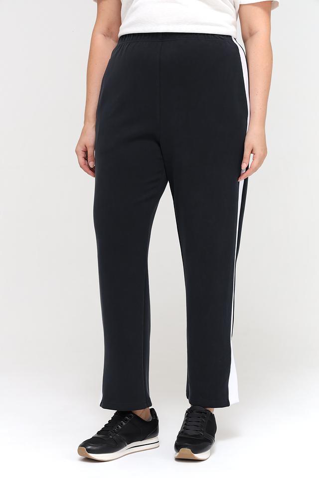 Чёрные брюки Beatris с боковыми полосками – удобная и стильная модель для повседневной носки. Прямой крой и эластичный пояс обеспечивают комфортную посадку, а лаконичный дизайн делает брюки универсальным элементом гардероба. Состав: модал 50%, полиэстер 40%, эластан 10%