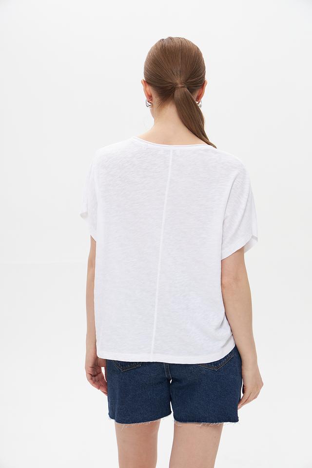 Футболка идеально сочетается с джинсами, шортами или юбками, а также может служить основой для многослойных образов. Благодаря нейтральному белому цвету, она легко интегрируется в любой гардероб. Это универсальная вещь, которая станет незаменимой частью вашего повседневного стиля.