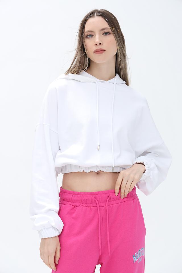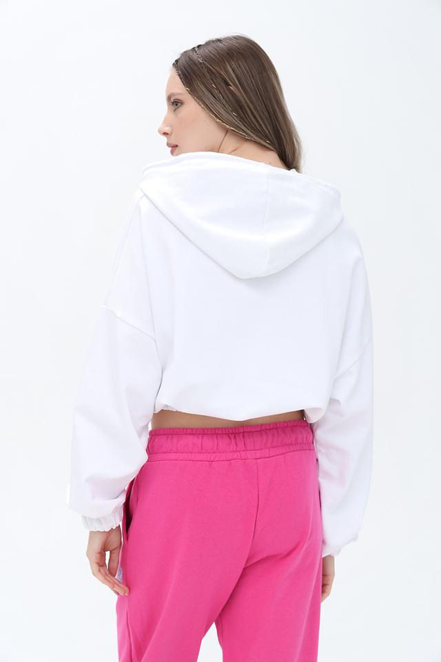 Белый джемпер от Alcott с капюшоном и укороченным кроем. Изготовлен из мягкого хлопка, обеспечивающего комфорт в носке. Стильный и удобный выбор для повседневного образа. Состав: хлопок 100%