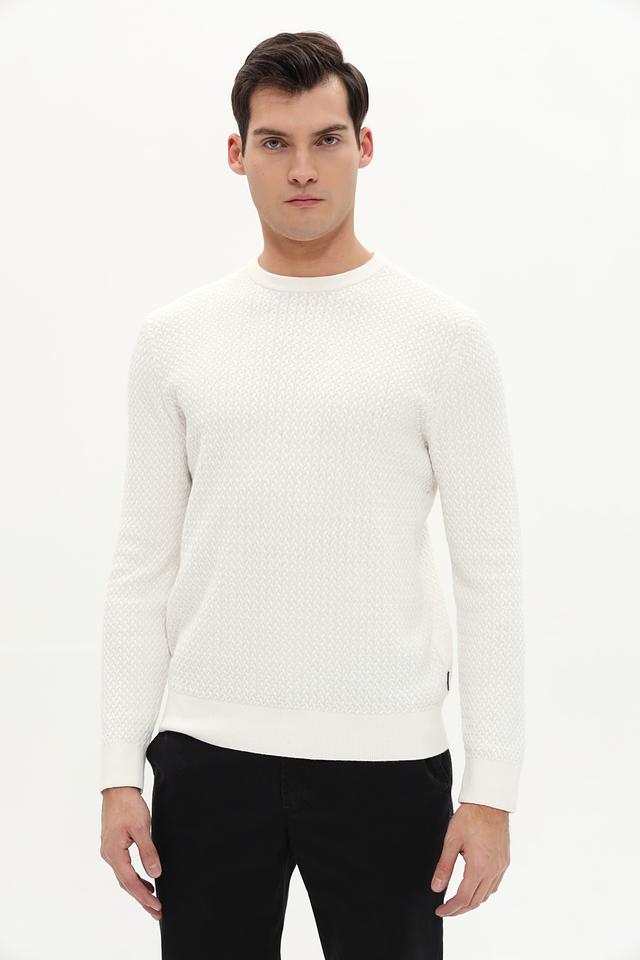 Мужской джемпер Bugatti белого цвета с выразительной текстурой выполнен из мягкого хлопка с добавлением кашемира. Классический крой и лаконичный дизайн делают его универсальным элементом гардероба. Состав: хлопок 95%, кашемир 5%