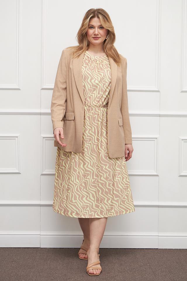Бежевый жакет Betty and Co – это стильное и универсальное решение для создания элегантного образа. Прямой крой и лаконичный дизайн делают его подходящим для различных случаев. Жакет выполнен из качественного материала с добавлением полиэстера и эластана. Состав: полиамид 75%, метализ.полиэстер 21%, эластан 4%
