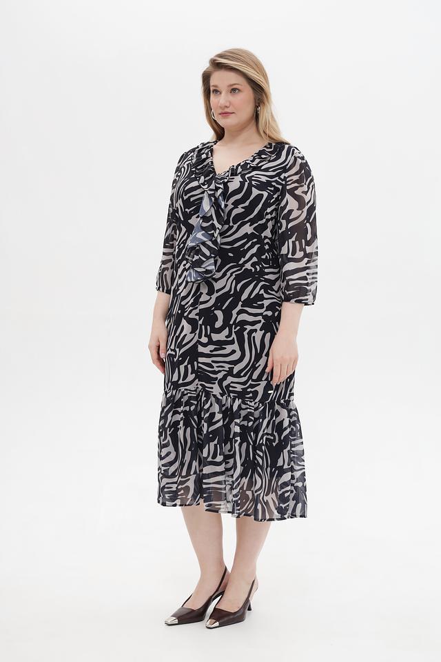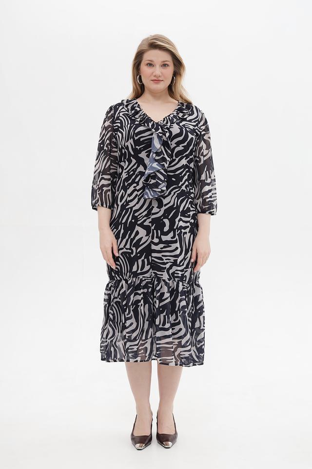 Это платье от Betty and Co – идеальный выбор для тех, кто ценит комфорт и оригинальный дизайн. Платье выполнено в черном цвете с эффектным принтом, имитирующим шкуру зебры, что делает его ярким и запоминающимся.