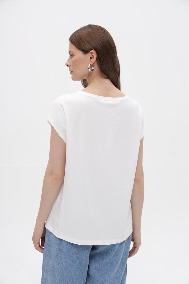 Состав ткани: 47% хлопок, 47% модал, 6% эластан. Хлопок обеспечивает воздухопроницаемость, модал – мягкость и приятные тактильные ощущения, а эластан – небольшую эластичность, благодаря которой блузка хорошо садится по фигуре.