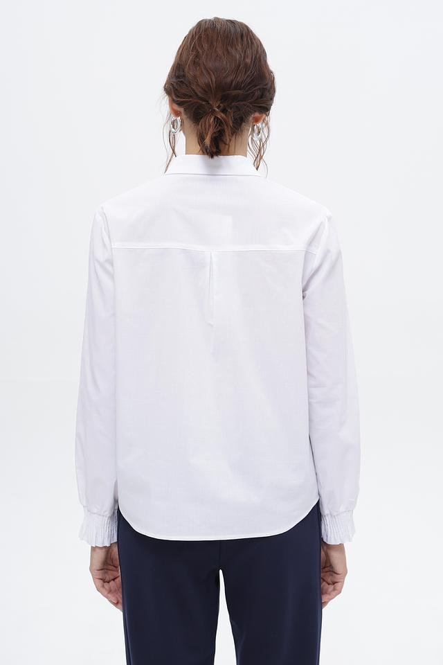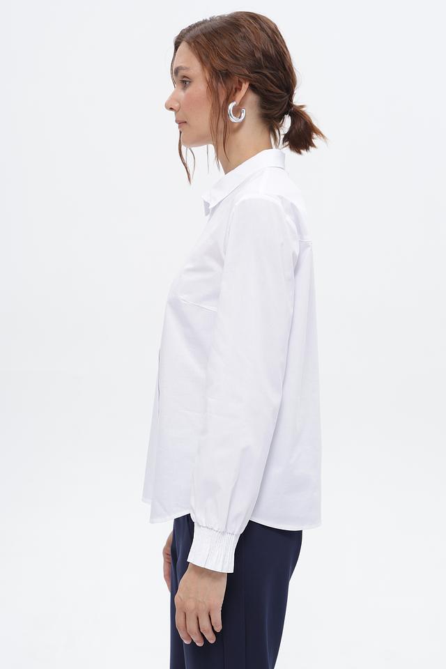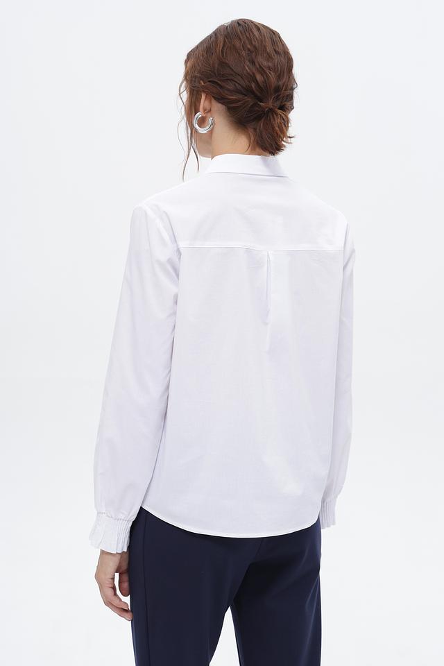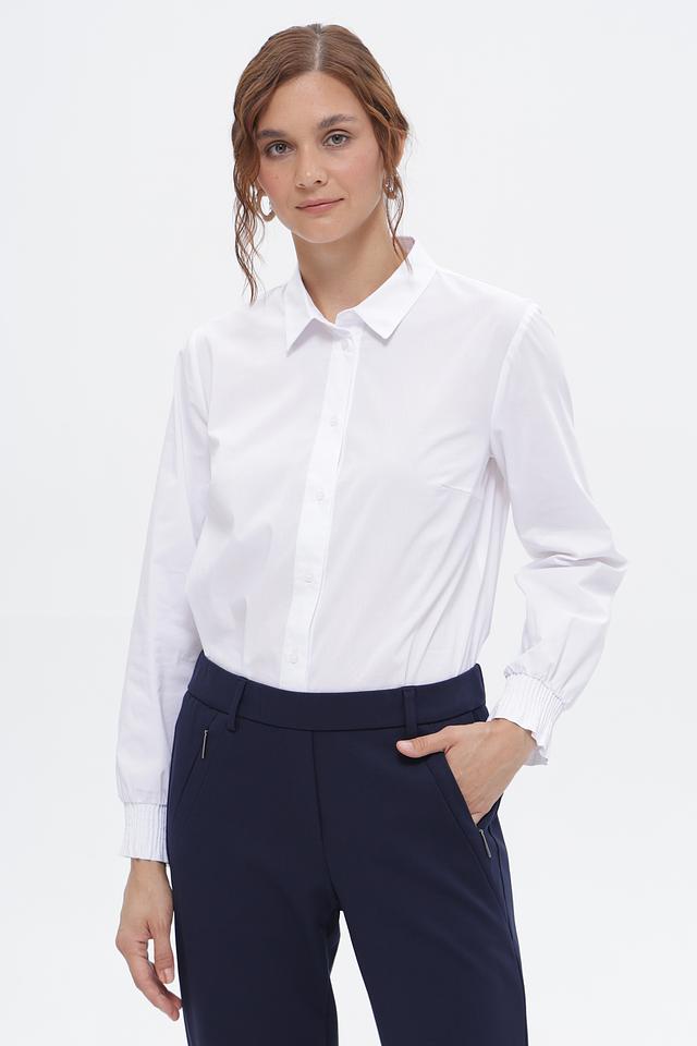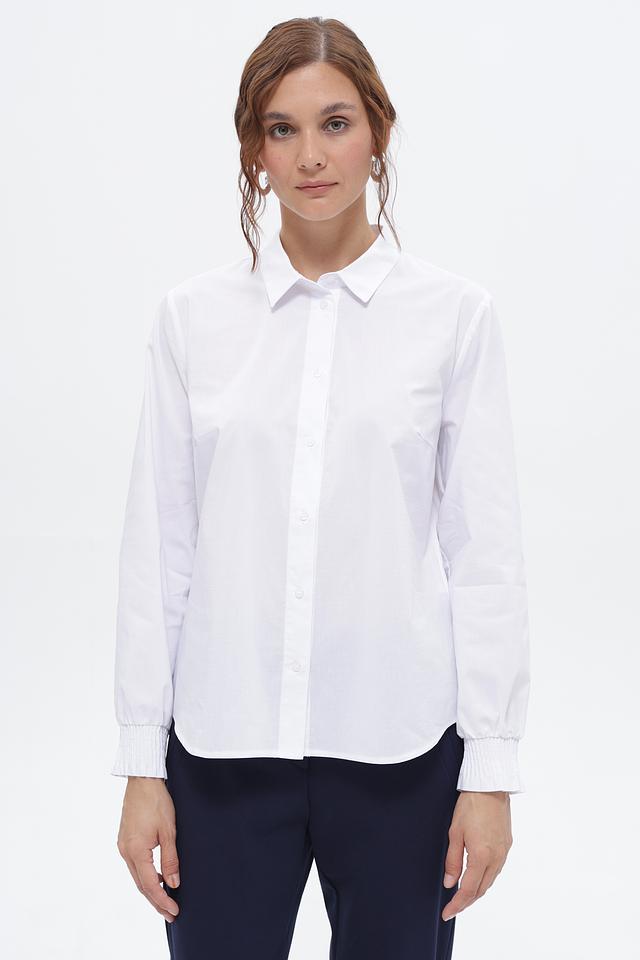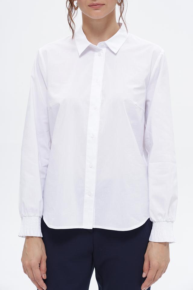 Особенностью этой модели являются манжеты на пуговицах и аккуратный воротник. Рубашка идеально подходит для создания как деловых, так и повседневных образов. Она легко сочетается с брюками, юбками и джинсами.
