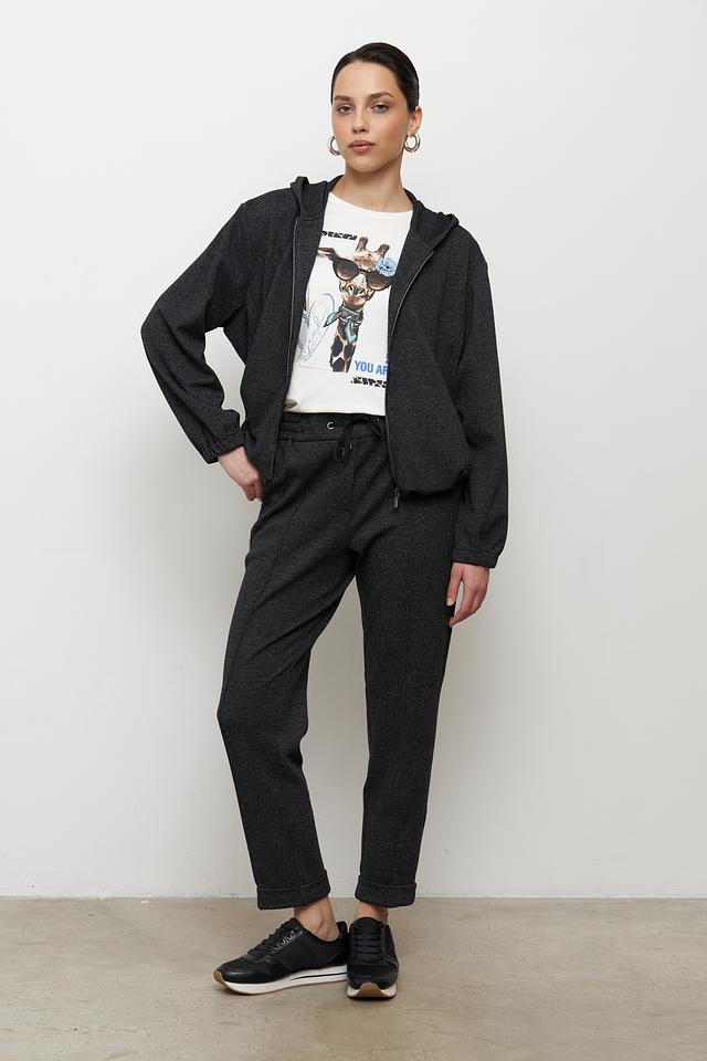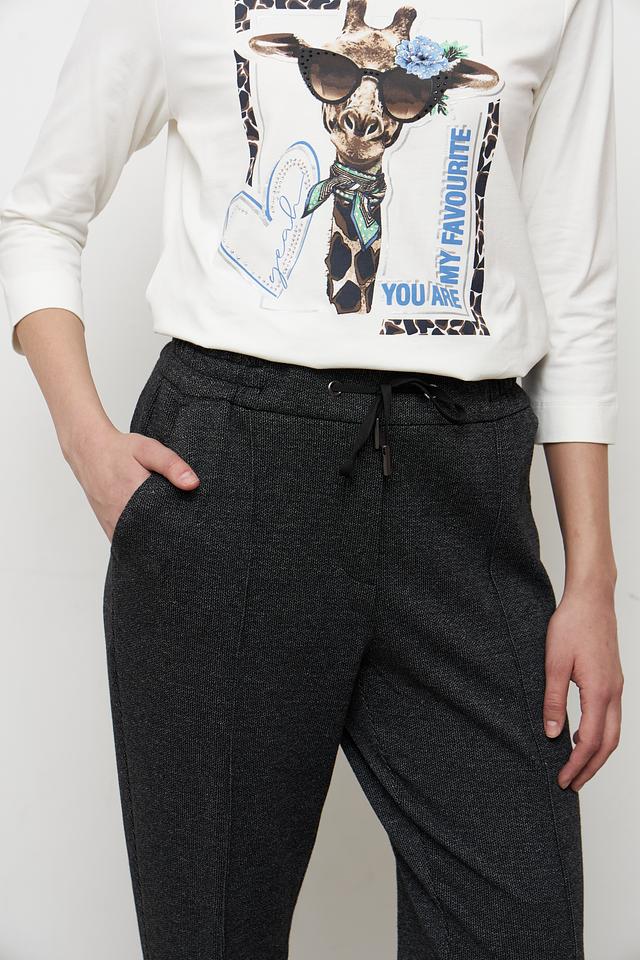 Эти брюки от Betty and Co станут незаменимой частью вашего гардероба. Выполнены в сером цвете с деликатной текстурой, они легко сочетаются с различными элементами одежды.