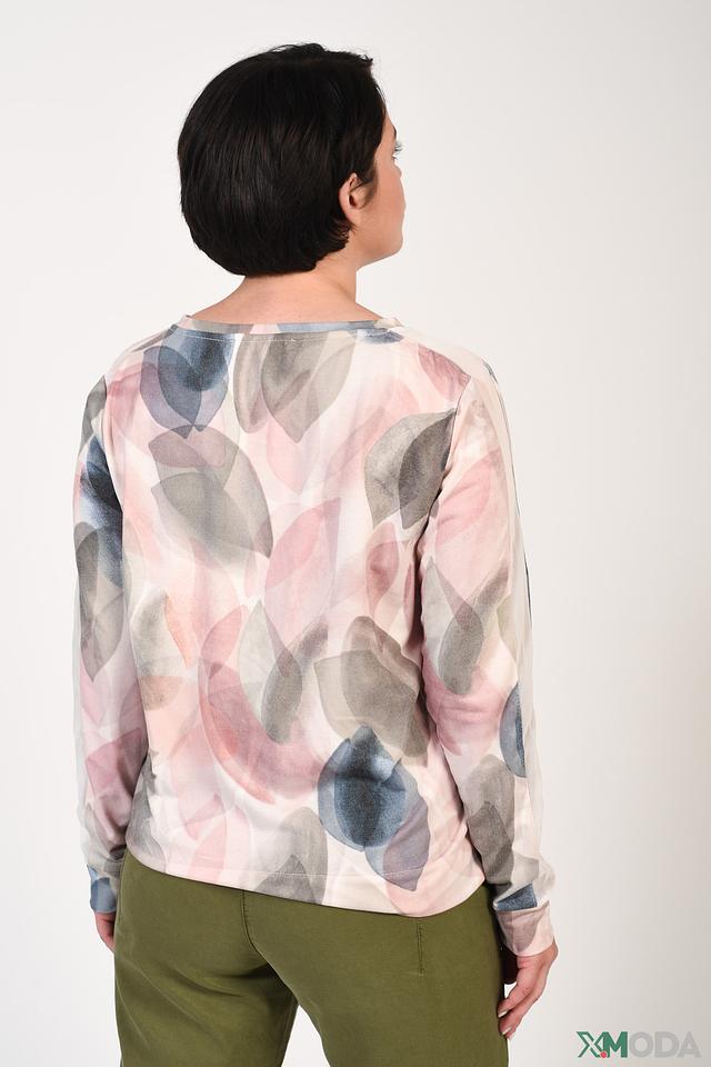 Модель имеет удобный крой с длинными рукавами и классическим округлым вырезом горловины. Блуза изготовлена из высококачественного материала, сочетающего в себе полиэстер (65%), хлопок (30%) и эластан (5%).