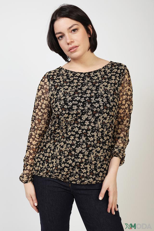 Эта блуза от Betty and Co – идеальный выбор для создания женственного и романтичного образа. Блуза выполнена в черном цвете и украшена мелким цветочным принтом, выполненным в бежевых и коричневых тонах.
