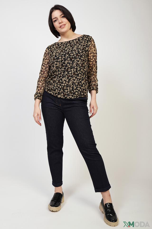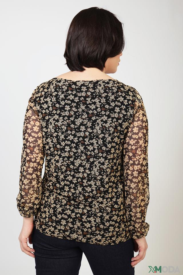 Модель имеет свободный крой, который обеспечивает комфорт в носке. Рукава блузы – ¾, выполнены из полупрозрачной ткани, что придает ей легкость и воздушность. Округлый вырез горловины подчеркивает линию шеи.