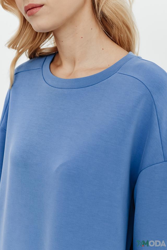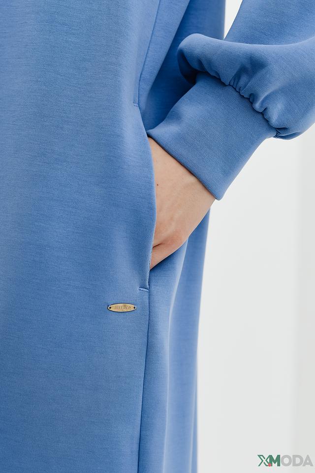 Это платье от Betty and Co выполнено в нежном голубом цвете и имеет свободный, оверсайз крой, который обеспечивает максимальный комфорт. Платье имеет круглый вырез горловины и длинные рукава с манжетами.