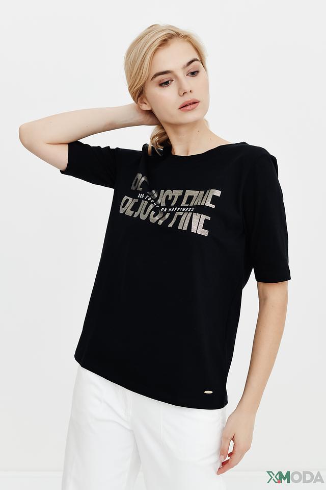 Эта футболка от Betty and Co станет отличным дополнением к вашему гардеробу. Выполнена в классическом чёрном цвете, который легко сочетается с другими вещами.