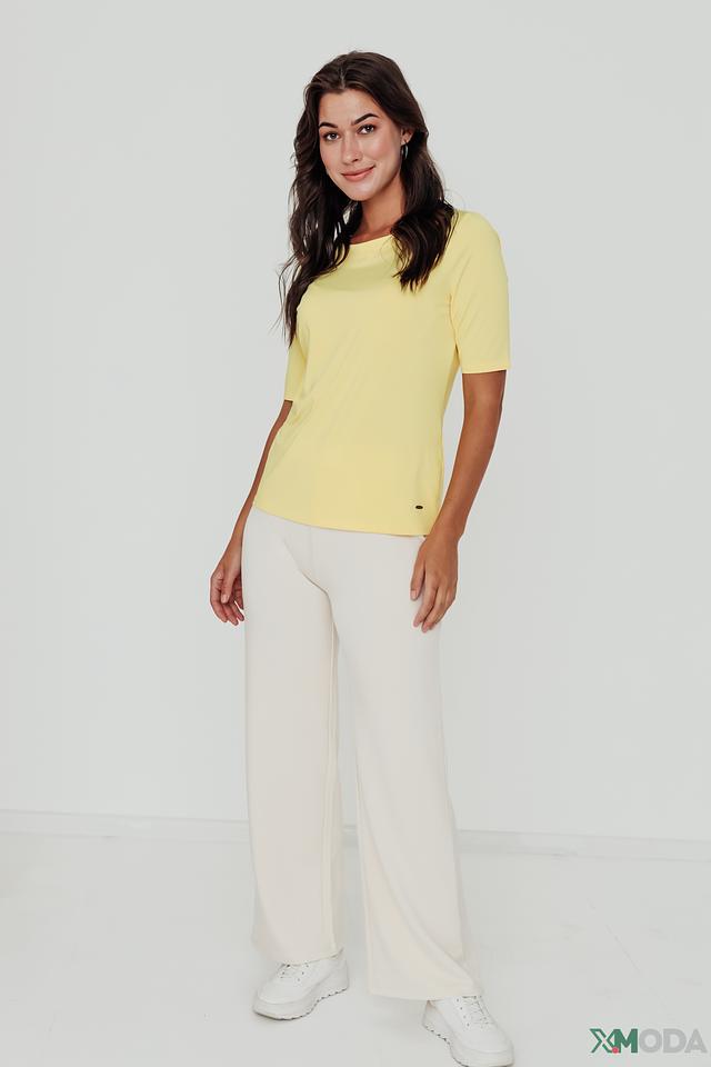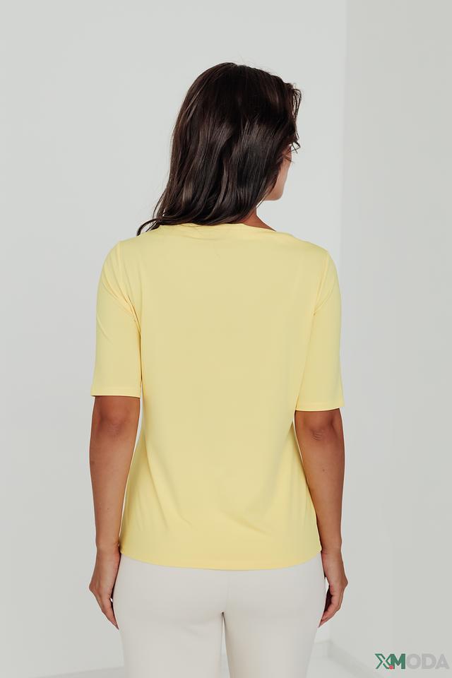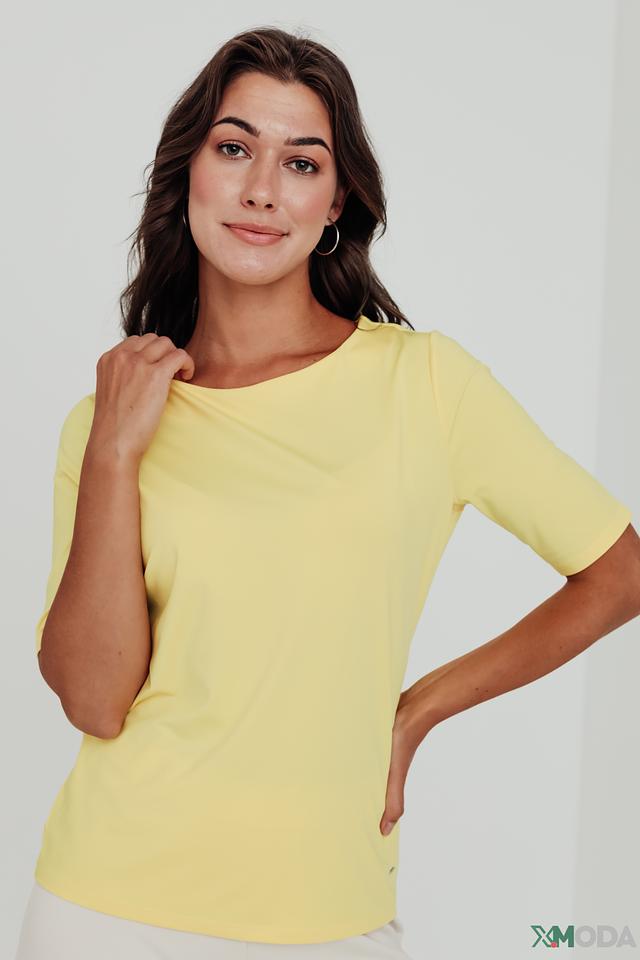 Жёлтая футболка Betty and Co — это стильная и удобная базовая вещь для создания повседневных образов. Модель выполнена из мягкого и приятного к телу материала с добавлением эластана, обеспечивающего комфортную посадку. Состав: полиэстер 92%, эластан 8%